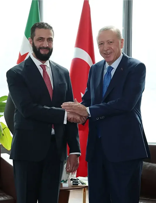 Cumhurbaşkanı Recep Tayyip Erdoğan, New York’taki Türkevi’nde Suriye Cumhurbaşkanı Ahmed Şara’yı kabul etti. Görüşmede, Suriye Dışişleri Bakanı Esad Şeybani ile MİT Başkanı İbrahim Kalın da yer aldı.