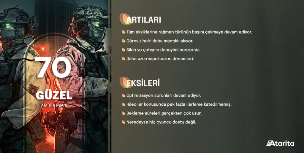 Özetlemek gerekirse, Escape From Tarkov 1.0 olarak beklediğimiz gibi çıkmadı. Birçok açıdan hala beta kalitesinde bir oyun gibi hissediliyor. Ancak tüm bu problemlere rağmen Tarkov’un sunduğu eşsiz deneyim, eşsiz bir yere sahip. Zorluğu kadar, insanı kendine bağlayan doğası, Tarkov’un hala neden bu denli popüler kaldığını gözler önüne seriyor.