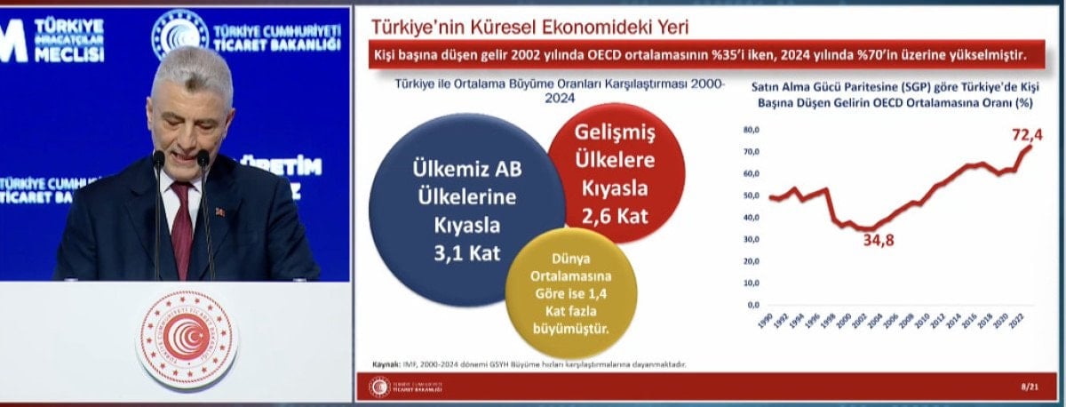 2002 yılında OECD ortalamasının yüzde 35’ine göre kişi başına düşen gelir, 2024 yılında yüzde 70’in üzerine çıktı.
