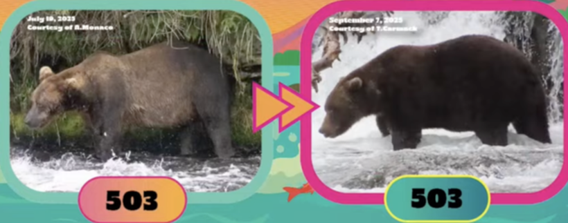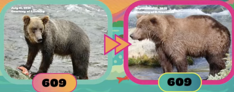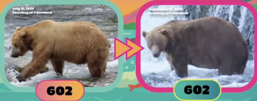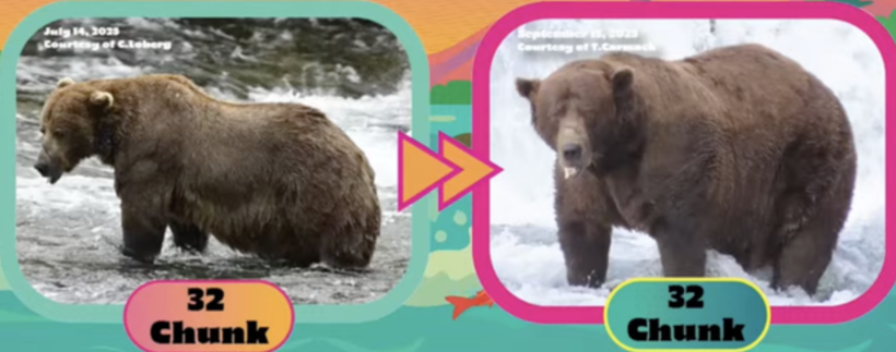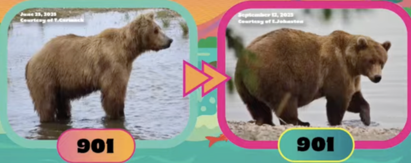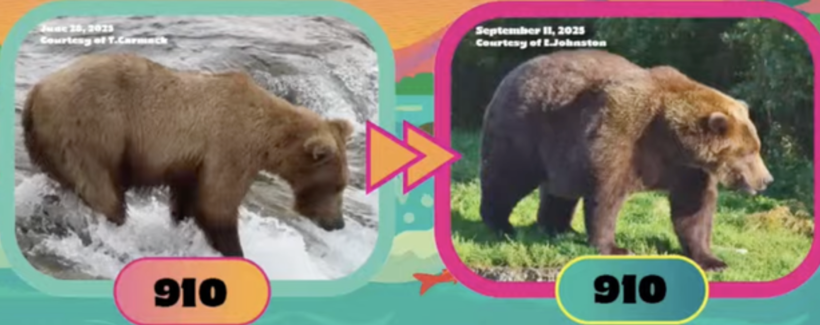 2025 Fat Bear Week’in son adayı 910. Boyutu nedeniyle dikdörtgen ve yolcu gemisi olarak tanımlanıyor.